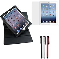 Evecase® Black 360 Degree Rotating Folio Leather Cover Case with Built-in Stand + Clear LCD Screen